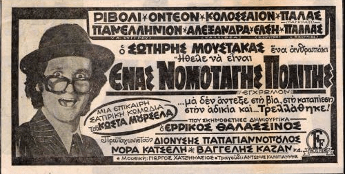 Πάμε όμως στην πρώτη ταινία που κατά την άποψη μας είναι και η πιο καλλιτεχνική, αλλά τα έχουμε πει ξανά για τις ορέξεις και τα διάφορα είδη πίτας από κολοκύθι. Ηχεί λοιπόν σήμερα, ανήμερα της Πρωτομαγιάς γλυκά και μεθυστικά στα αυτιά μας, μαζί με το γαργαλητό στη μύτης μας, του χαμομηλιού και των κρίνων του αγρού, το αξεπέραστο «Άνοιξε το παράθυρο να μπει , δροσιά να μπει του Μάη». Και το γλυκό και μελαγχολικό γρέζι της φωνής του Αντώνη Καλογιάννη μας θυμίζει ότι το συγκεκριμένο τραγούδι σε στίχους του Ερρίκου Θαλασσινού και μουσική του Γιώργου Χατζηνάσιου πρωτοκυκλοφόρησε ως σάουντρακ και μουσική επένδυση της εξαιρετικής ταινίας του 1974 «ΕΝΑΣ ΝΟΜΟΤΑΓΗΣ ΠΟΛΙΤΗΣ» σε σκηνοθεσία και πάλι του Ερρίκου Θαλασσινού και σενάριο του Κώστα Μουρσελά. Στην συγκεκριμένη, αριστουργηματική αλλά πολύ αδικημένη κατά την άποψή μας ταινία, πρωταγωνιστεί ο Σωτήρης Μουστάκας σε έναν τραγικό για εμάς ρόλο αν και κάποιοι βιαστικά καταχωρούν την συγκεκριμένη ταινία στις κωμωδίες. Διακρίνουμε λοιπόν από την πρώτη στιγμή της ταινίας το τεράστιο ερμηνευτικό ταλέντο του Σωτήρη Μουστάκα, στο ρόλο αυτού που οι περισσότεροι από εμάς βιώνουμε καθημερινά στο πετσί μας. Ενός μεσήλικα, εργαζόμενου ανθρώπου που μαστίζεται από όλα τα στερεότυπα θέλω του κοινωνικού του περίγυρου, από τα ψευδεπίγραφα «πρέπει», που η υποτιθέμενη ηθική μας εμποτίζει, από το σχολείο ακόμη, και από μια τιμιότητα, μια ηθική που δεν αφήνει τους ειλικρινείς και πραγματικά ευαίσθητους ανθρώπους όχι μόνο να ακμάσουν αλλά ούτε καν να επιβιώσουν.